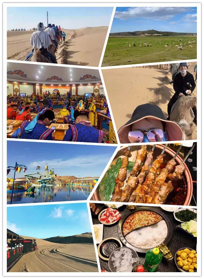小伙伴們品嘗了大奶糕、烤全羊、牛肉干等當?shù)貥O具特色的美食;游玩了騎馬、騎駱駝、坐沙漠越野車等當?shù)靥厣幕顒禹椖浚⒓恿梭艋鹜頃?,入住了特色蒙古包?